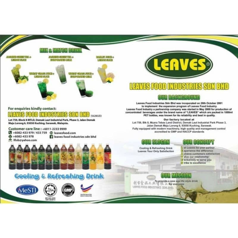 Leaves is the brand name well known for its reliability and best in quality for beverage products. 浓缩饮料和最新无添加人工色素无防腐剂 无人造甜味剂 的Pandan. Lasso Food Industries Sdn Bhd.