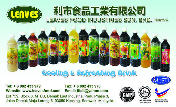 Is a company registered with Suruhanjaya Syarikat Malaysia and and is issued with the registration number 562802-D for its business operation. Food Beverage Leaves Food Industries Lorong 6 Demak Industrial Park Phase III Kuching Sarawak Malaysia. They setting up a factory in Pasir Gudang Johor neighbouring to many international factories.